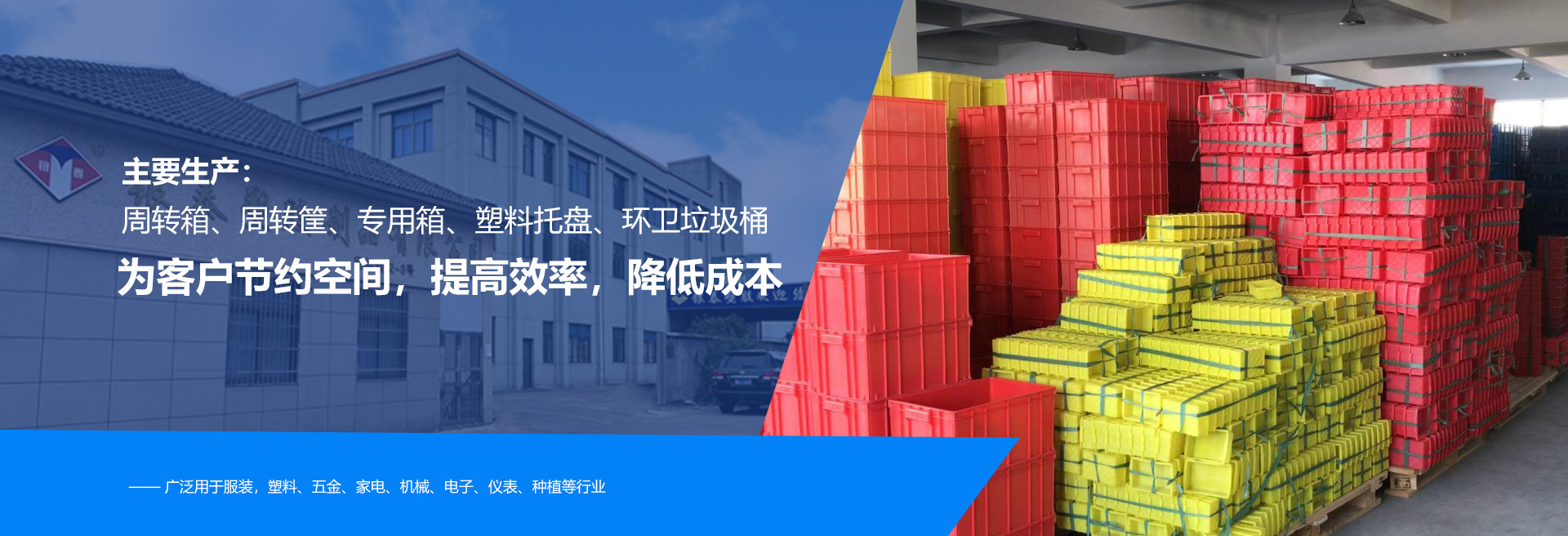公司經(jīng)過(guò)幾年的發(fā)展,公司已形成周轉(zhuǎn)箱、周轉(zhuǎn)筐、專用箱、塑料托盤、環(huán)衛(wèi)垃圾桶等幾個(gè)系列,并可訂做特殊規(guī)格及防靜電產(chǎn)品,廣泛用于服裝,塑料、五金、家電、機(jī)械、電子、儀表、種植等行業(yè)。本著“為客戶節(jié)約空間,提高效率,降低成本”的理念,竭誠(chéng)為國(guó)內(nèi)外客戶提供更完善的產(chǎn)品和更周到的服務(wù)。